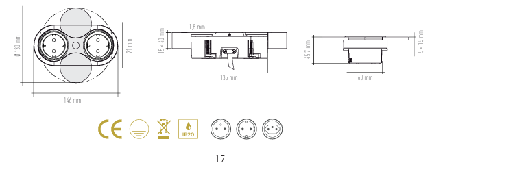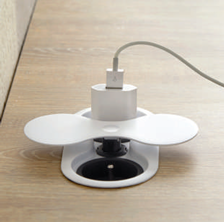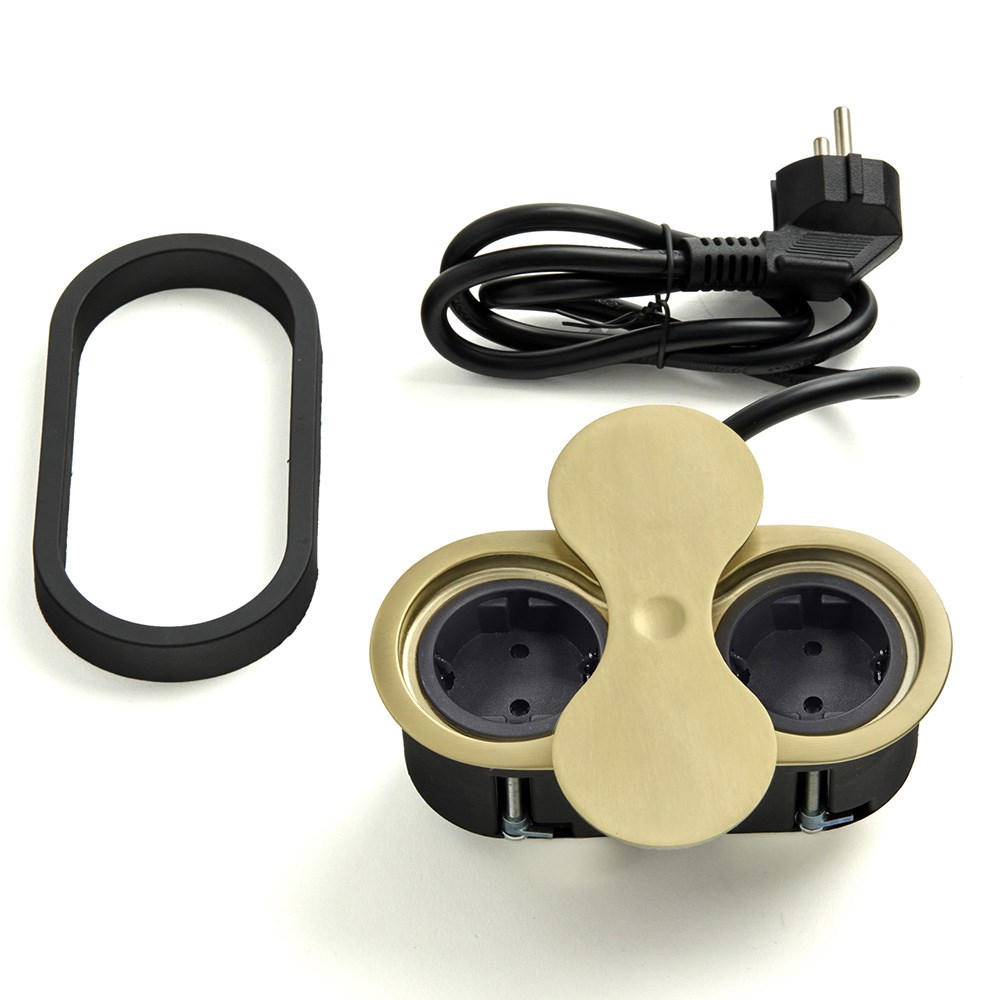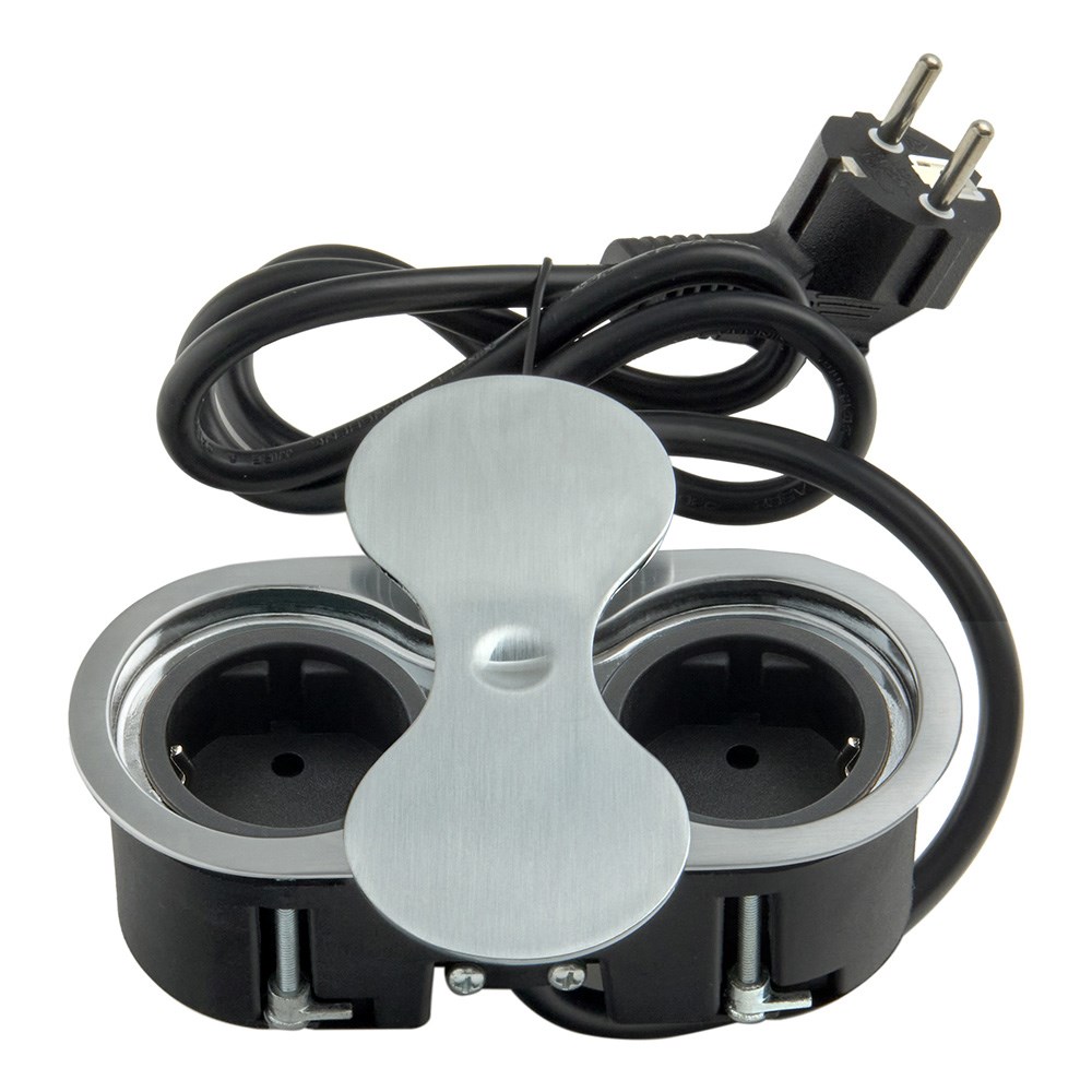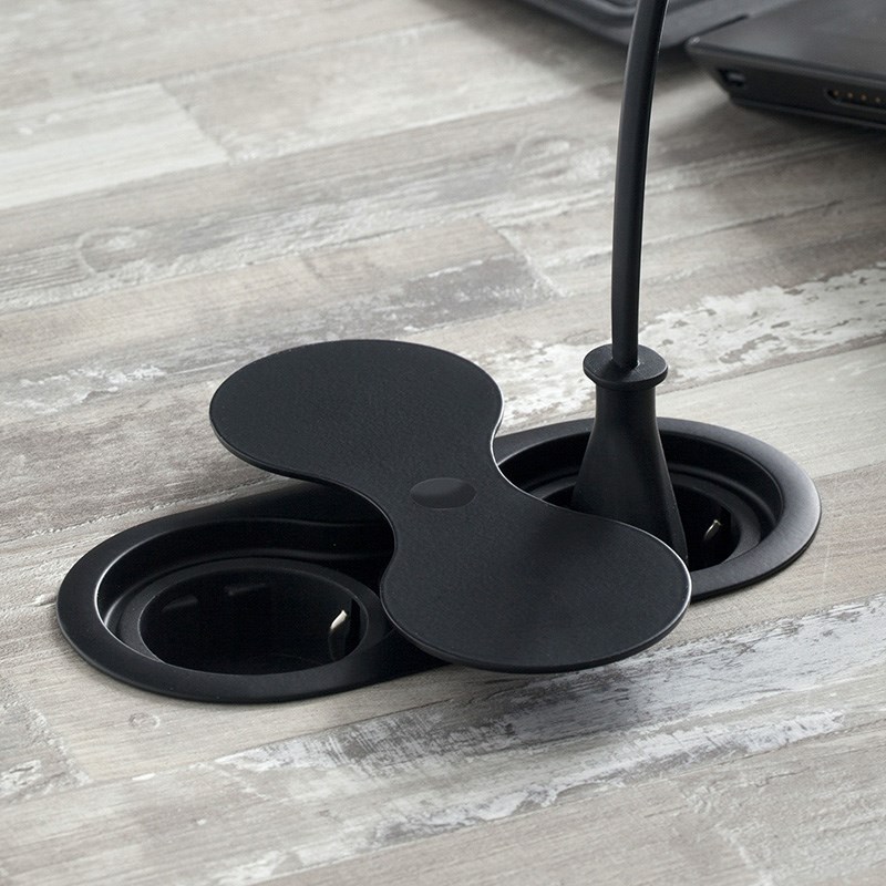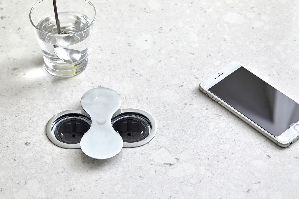 Pistorasia KASI on ovaalin muotoinen, tasoon upotettava pistorasiaratkaisu kahdella pistokkeella.